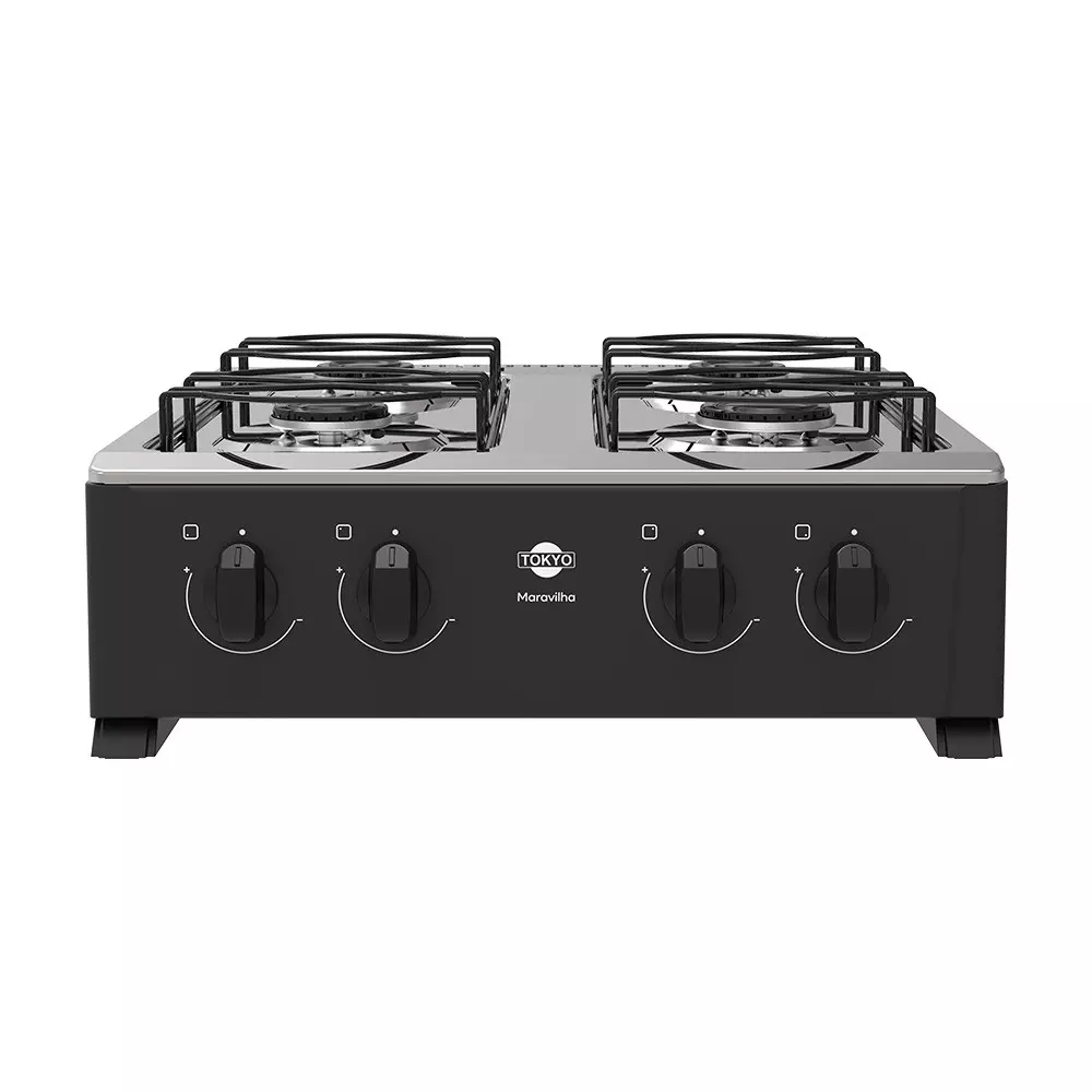 COCINA A GAS TOKYO MARAVILHA 4H NEGRO MESADA INOX